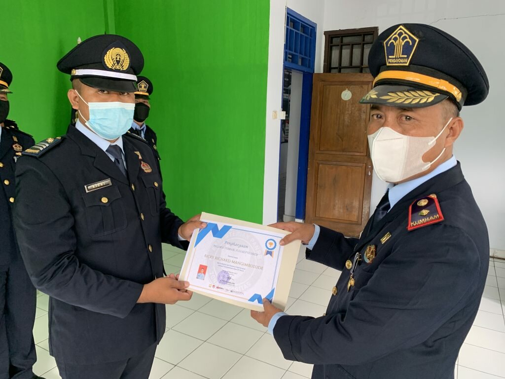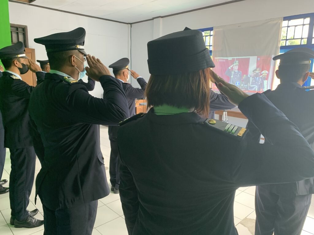 Upacara dilaksanakan di Ruang Rapat Lapas Tahuna dan diikuti oleh Plt. Kepala Lapas, Alfred Awoah bersama pejabat struktural dan pegawai staf.
